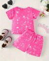 Kids Baby Girls Casual Cute Cartoon Print Short Sleeve T-Shirt Shorts Sets